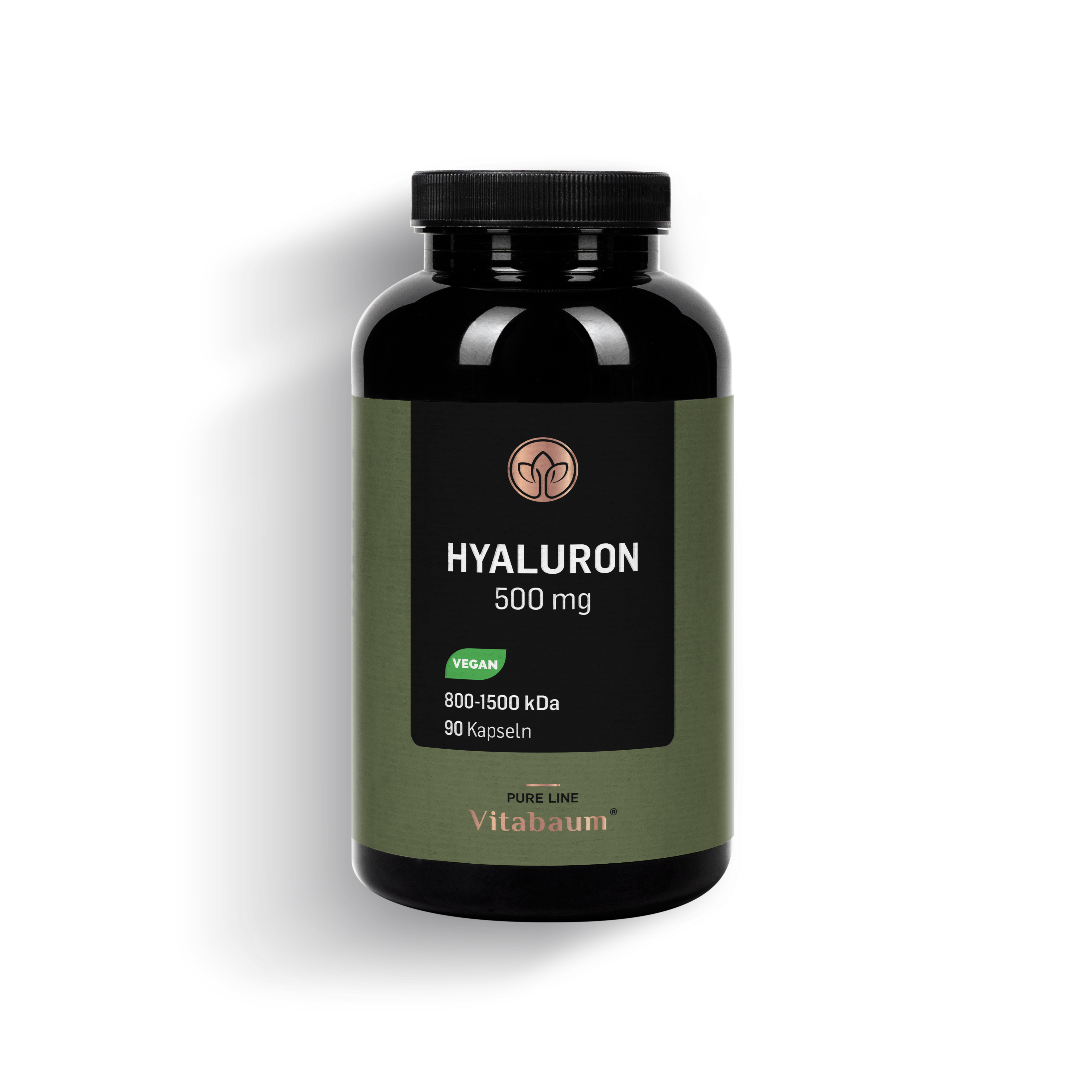 Hochmolekulare Hyaluronsäure bleibt überwiegend an der Hautoberfläche und bindet dort Feuchtigkeit, wodurch sie für ein pralleres und glatteres Hautbild sorgt. Niedermolekulare Hyaluronsäure kann tiefer in die Hautschichten eindringen, wird aber häufiger in Cremes verwendet. In unseren Kapseln setzen wir auf hochmolekulare Hyaluronat, um gezielt die Feuchtigkeitsbindung und den Schutz der Hautbarriere von innen zu unterstützen.