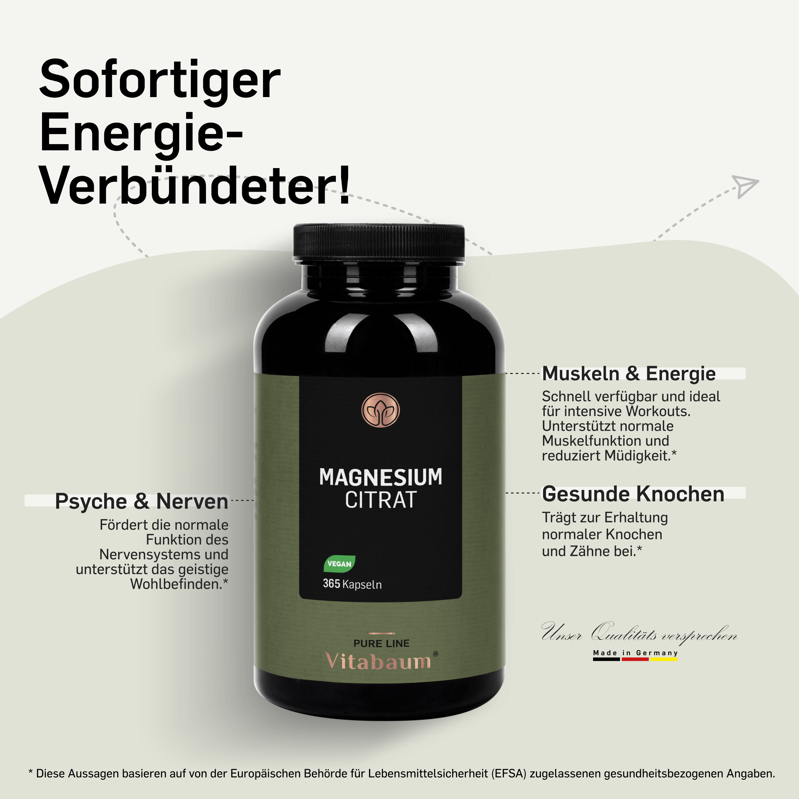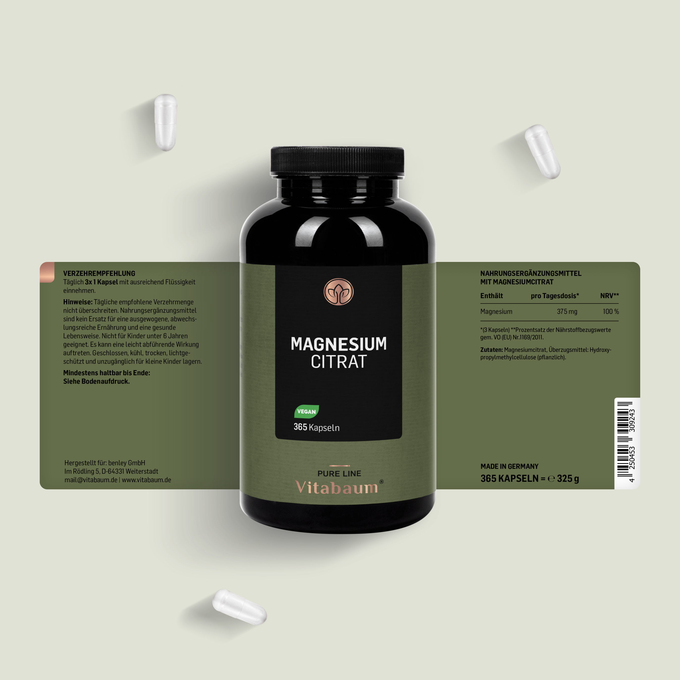 Das Vitabaum® Magnesiumcitrat liefert 375 mg Magnesium pro Tagesportion (entspricht 3 Kapseln) in gut bioverfügbarer Citrat-Form. Pro Kapsel sind 125 mg reines Magnesium enthalten – eine vernünftige Einzeldosierung, die sich flexibel über den Tag oder gezielt vor dem Schlafen einnehmen lässt, wie ich es selbst meist mache.Besonders positiv fällt auf, dass das Produkt vegan, glutenfrei und laktosefrei ist – damit ist es auch für sensible Personen problemlos geeignet. Die Citrat-Verbindung ist organisch und gilt als eine der am besten vom Körper aufnehmbaren Formen von Magnesium.Mit 365 Kapseln bietet die Packung einen soliden 4-Monats-Vorrat und das zu einem fairen Preis von 29,99 €. Die Wirkung ist wie erwartet zuverlässig – ich habe nichts Negatives zu berichten.Insgesamt ein hochwertiges, gut verträgliches und durchdachtes Magnesiumpräparat, das genau das liefert, was es soll.