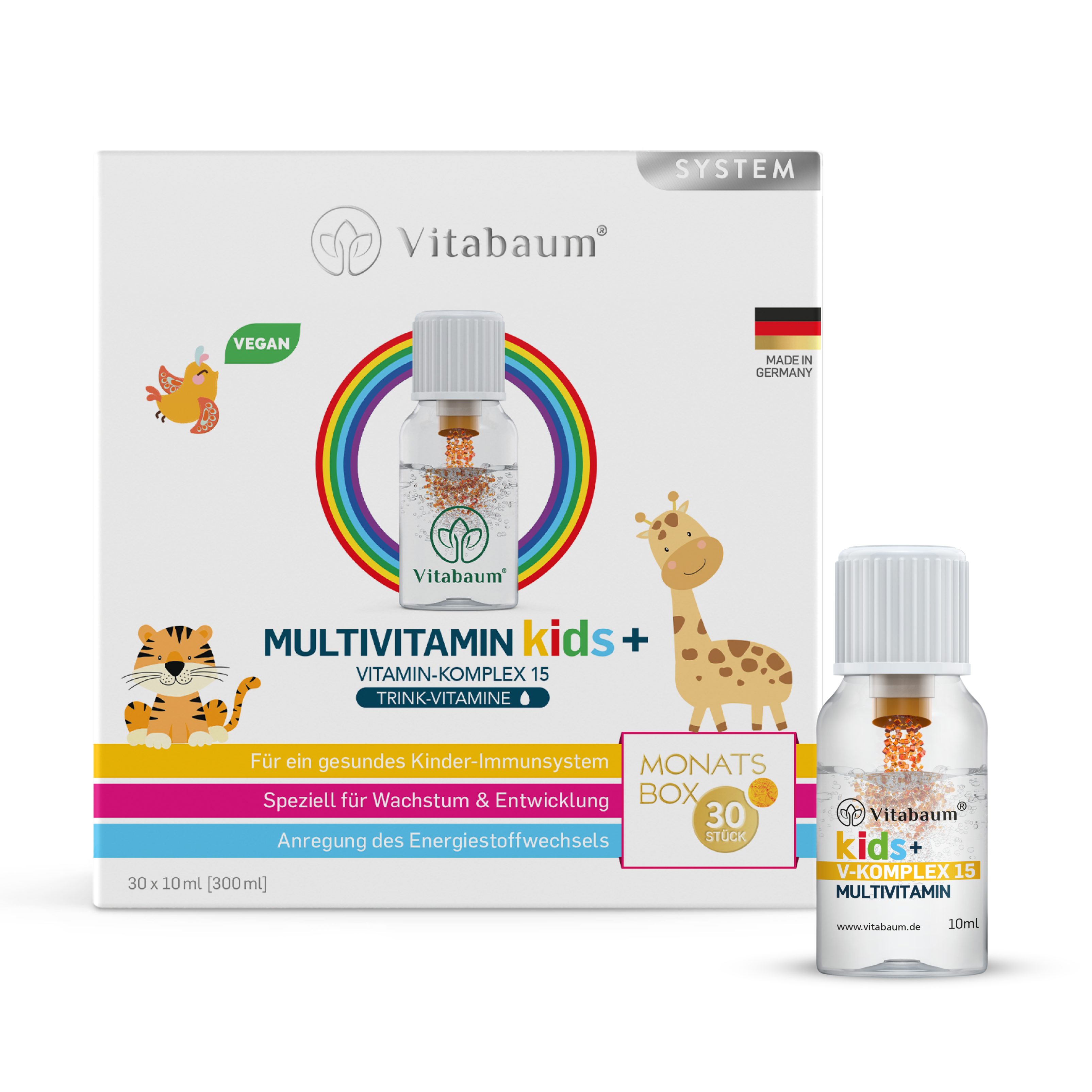 Vitabaum® Multivitamin Kids+ Vitamin Komplex 15 für Kinder bietet eine ausgewogene Allround-Formulierung für Ihre Kinder im Alter von 4 bis 12 Jahren. Es wurde speziell auf die besonderen Bedürfnisse des Immunsystems von Kinder zugeschnitten. Der tägliche Verzehr ist, dank des fruchtigen Geschmacks, ein Kinderspiel.