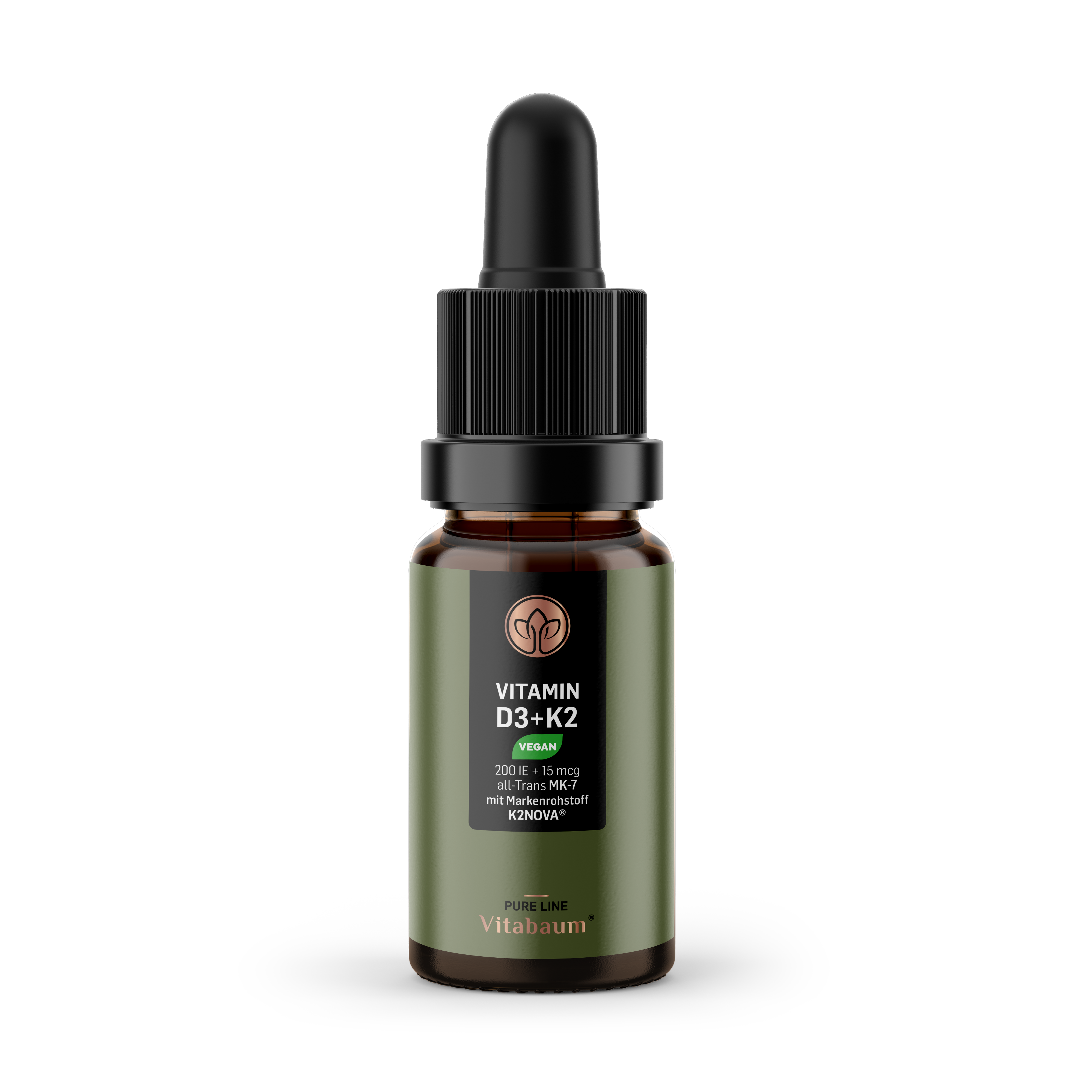 Vitamin D3 und K2 sind fettlösliche Vitamine, die im Körper wichtige Aufgaben übernehmen. Vitamin D3 wird mit Hilfe von Sonnenlicht gebildet, während Vitamin K2 vor allem in fermentierten Lebensmitteln vorkommt. Besonders in den Wintermonaten ist die Versorgung mit Vitamin D3 oft eingeschränkt. Beide Vitamine tragen zur Erhaltung normaler Knochen bei und werden am besten zusammen mit einer Mahlzeit aufgenommen.